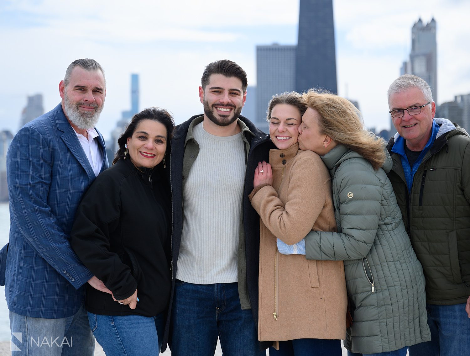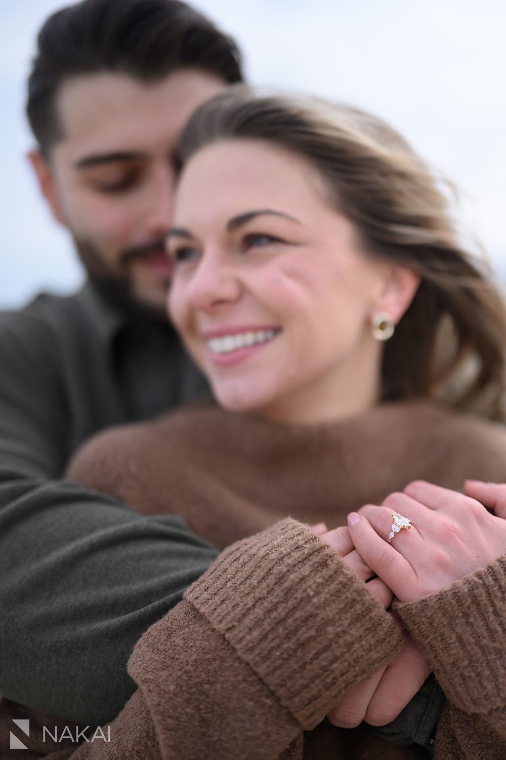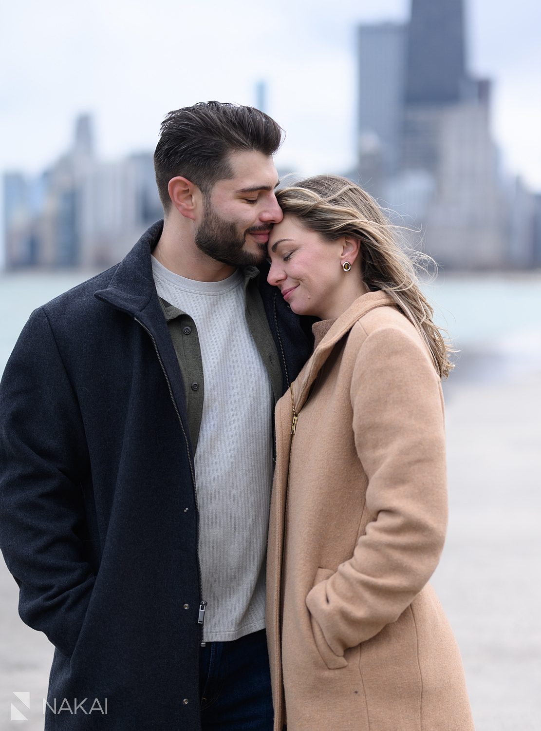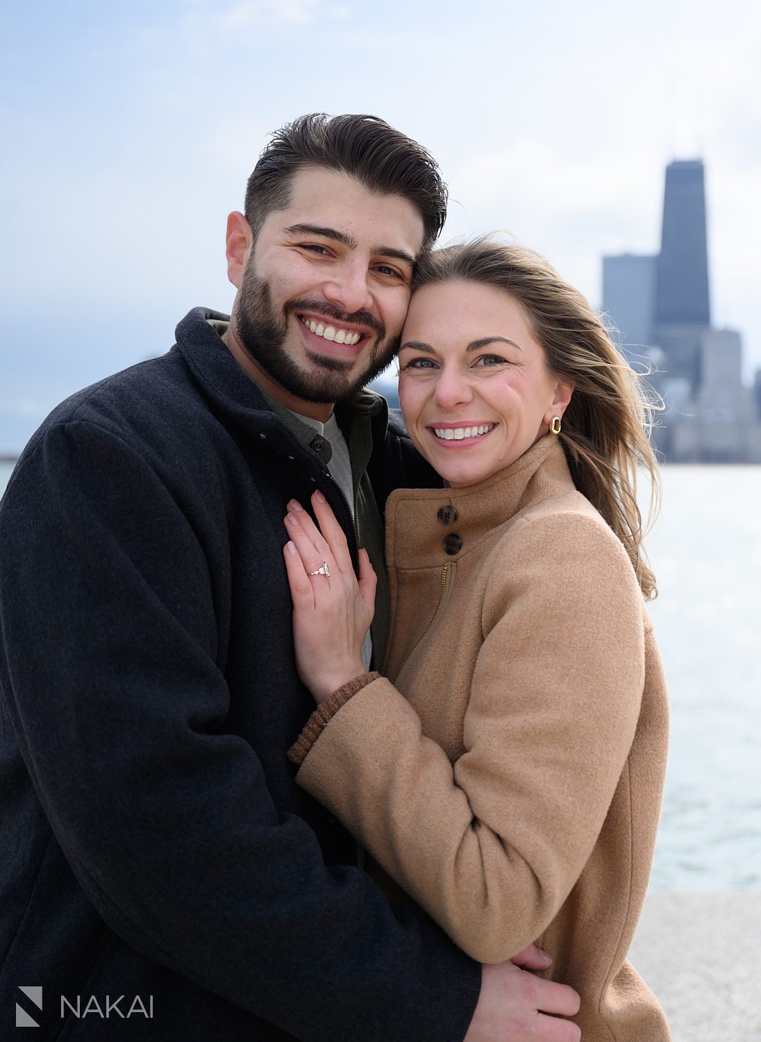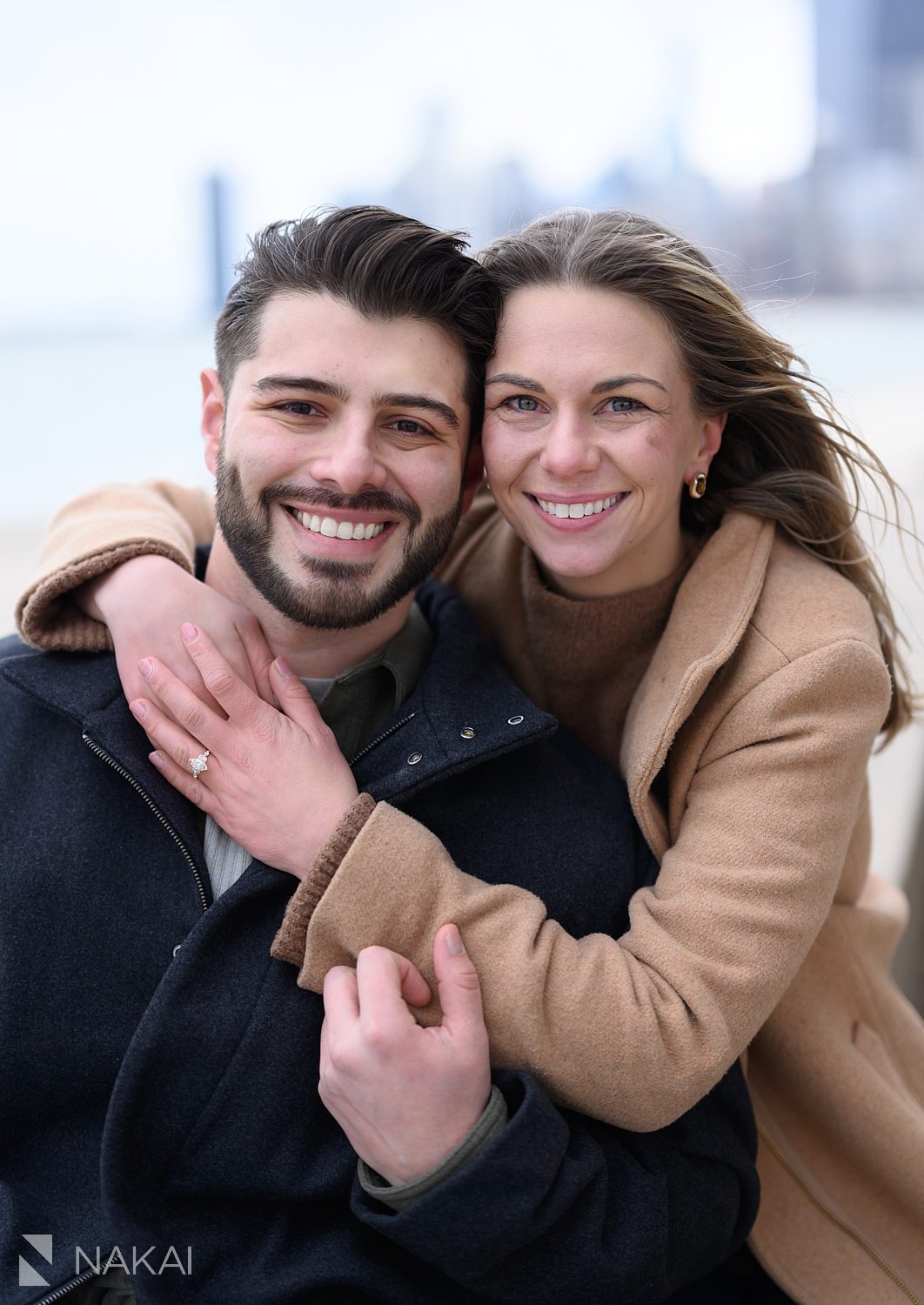 Real talk…this proposal happened on the last day of Feb. It was not terribly cold…but it also was not warm. Chicago weather can be fickle like that. One good thing about colder weather…there are less people around. It was like they had the pier and beach to themselves for their proposal! Don was hoping for a little privacy for their proposal – and they definitely got it! Prime location with a gorgeous view of the Chicago skyline AND minimal people around.