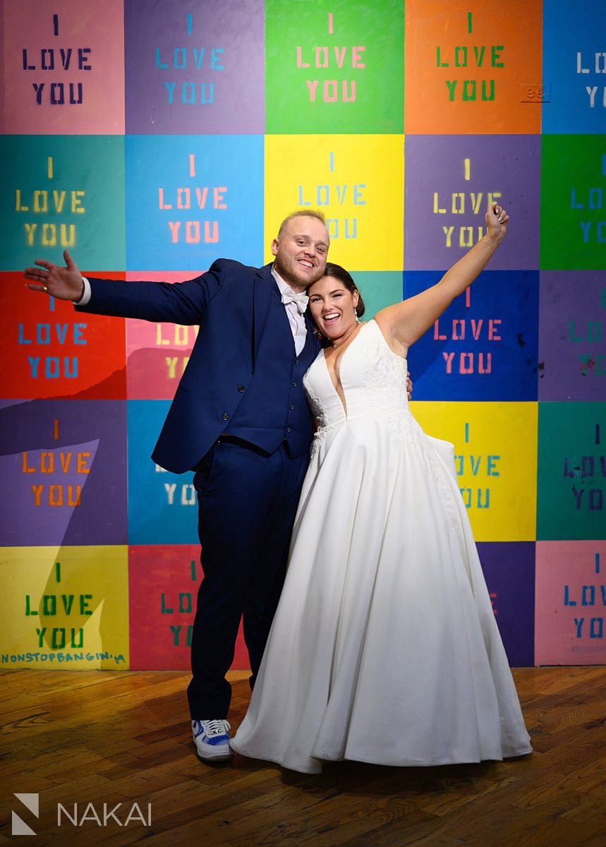 A Lacuna Lofts wedding wouldn’t be complete without a photo in front of their “I LOVE YOU” mural!